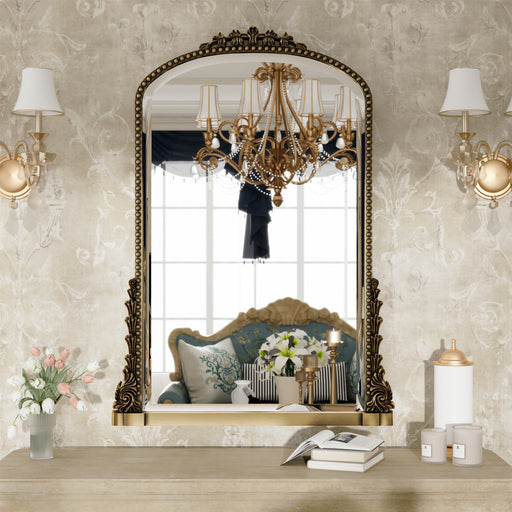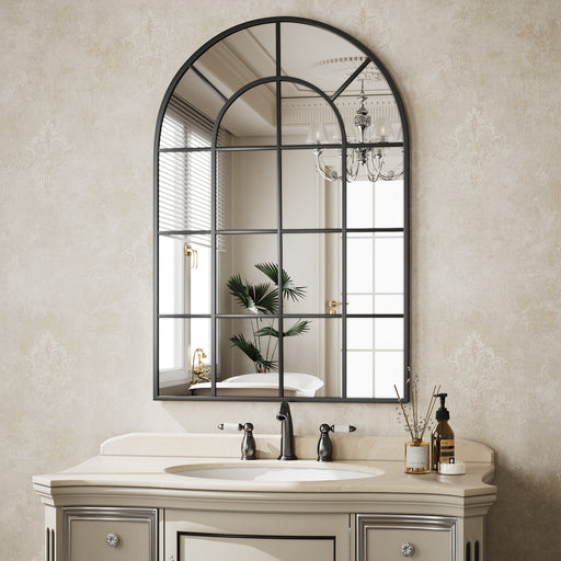BEAUTYPEAK 36"x 24" Arched Windowpane Mirror Decor Wall Mirror
