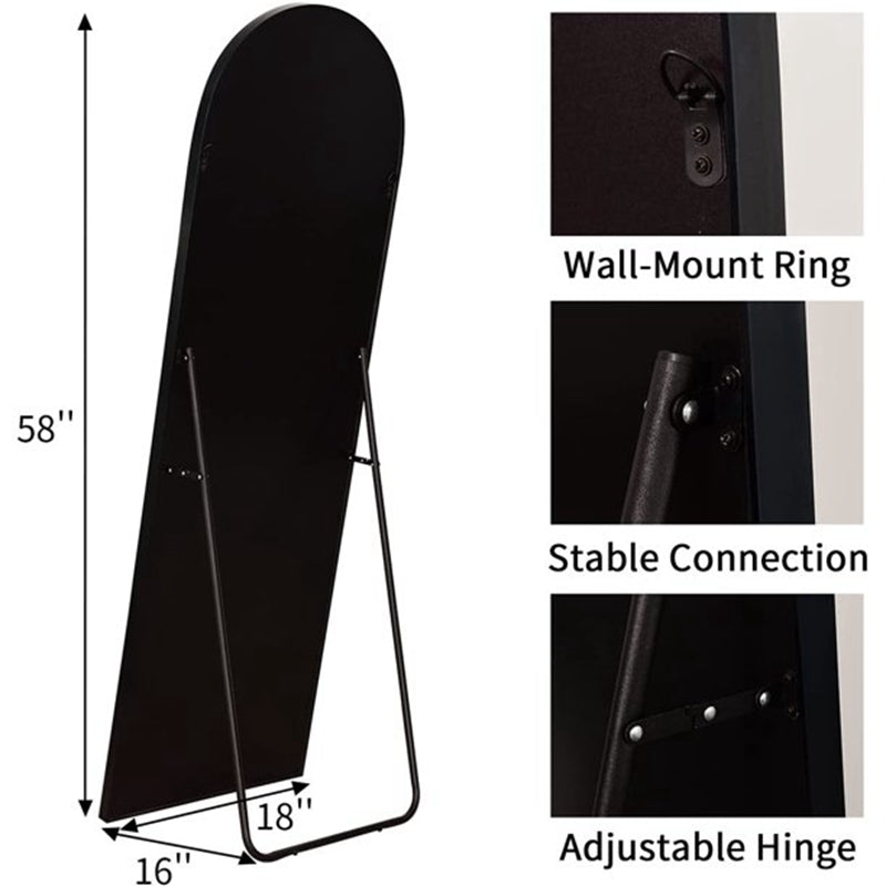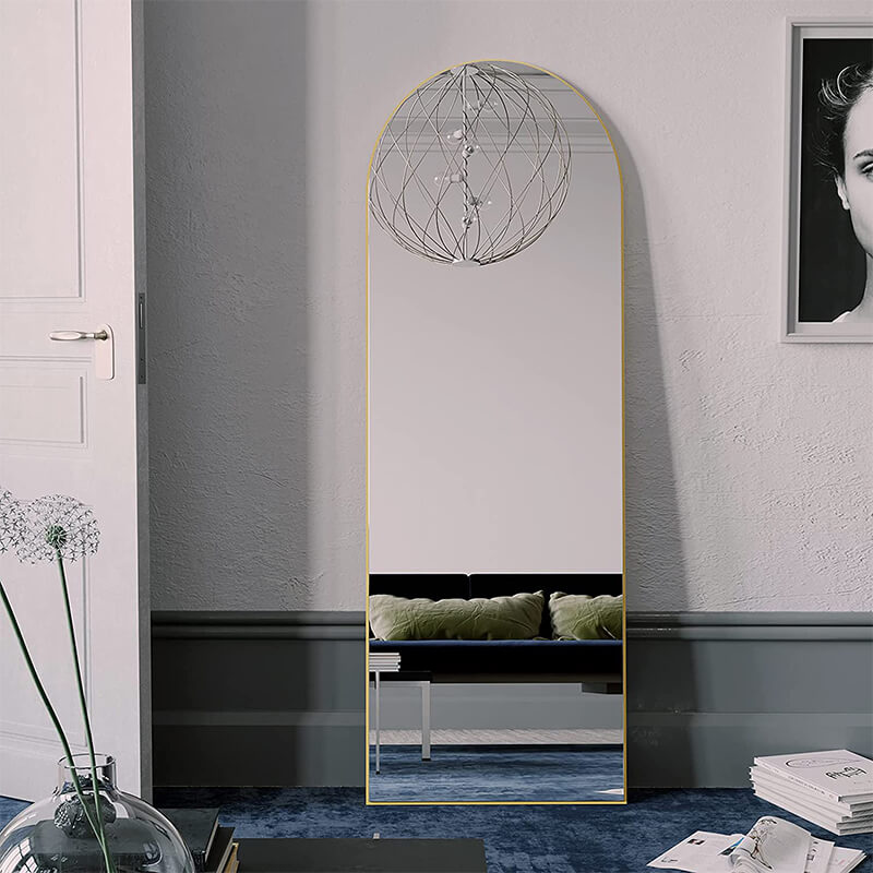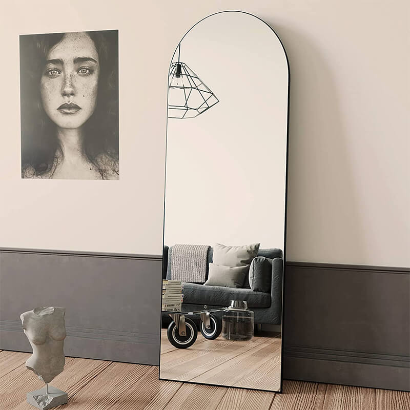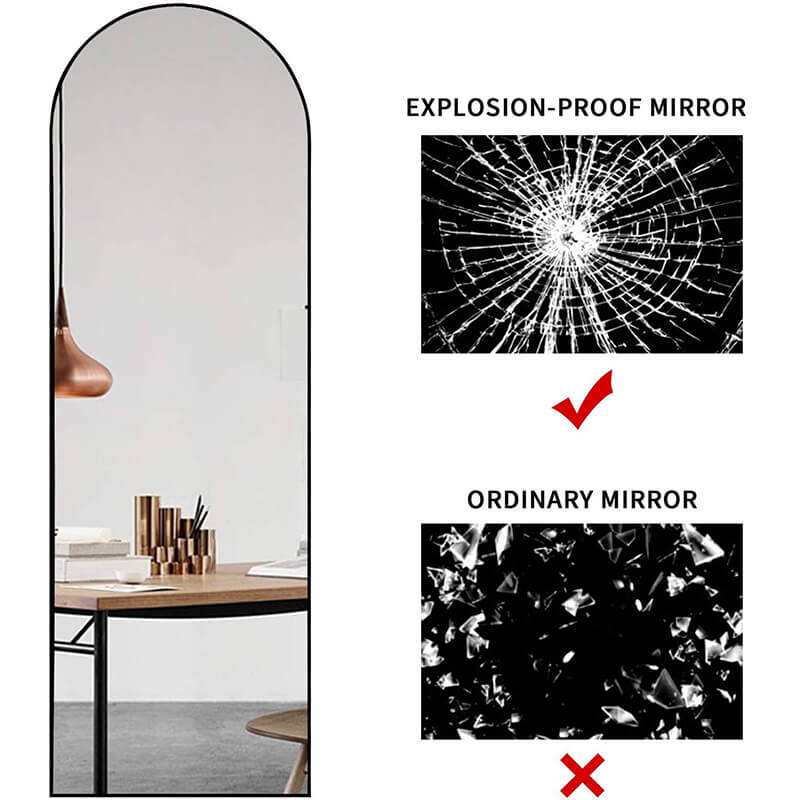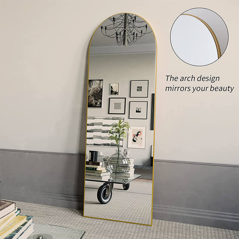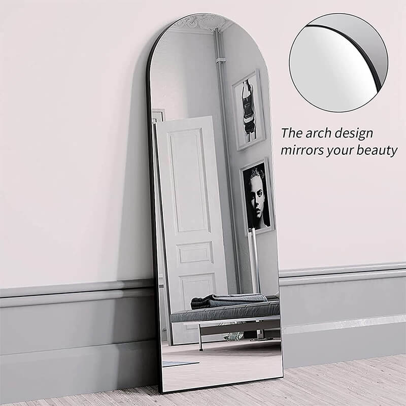 - Unique Design: The top of the floor mirror is designed with a unique smooth arched-top frame, which especially attracts people's attention and highlights the beauty of the mirror. The thin aluminum alloy frame makes the mirror looks more classic and it is suitable for dressing in any room.