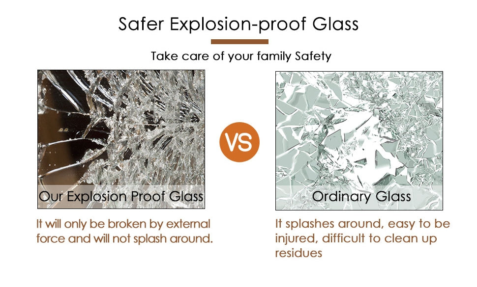 - High-quality Glass: The full body mirror is made of high-quality float glass which can provide super HD imaging and undistorted reflection. The back is covered with an explosion-proof membrane so that it's safer. Even it is accidentally damaged by an external force, the broken pieces of mirror will not splash in all directions