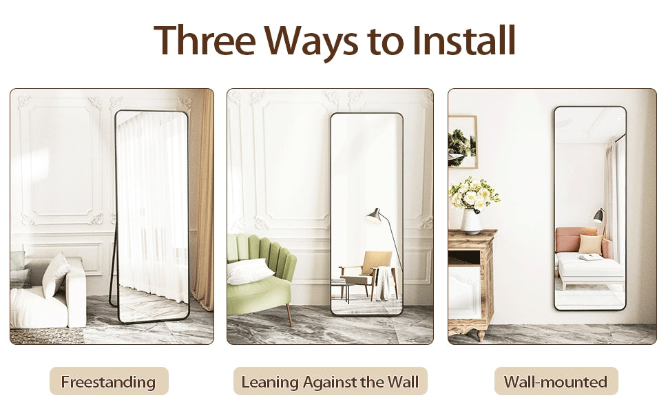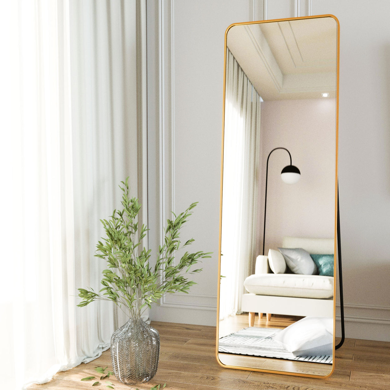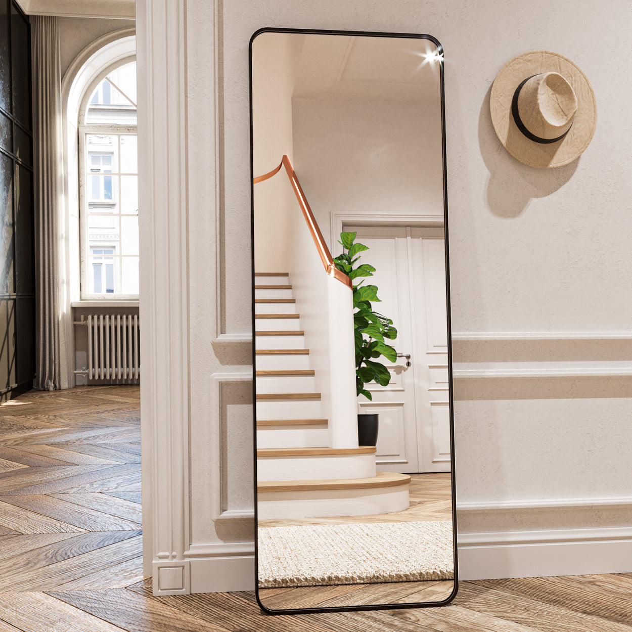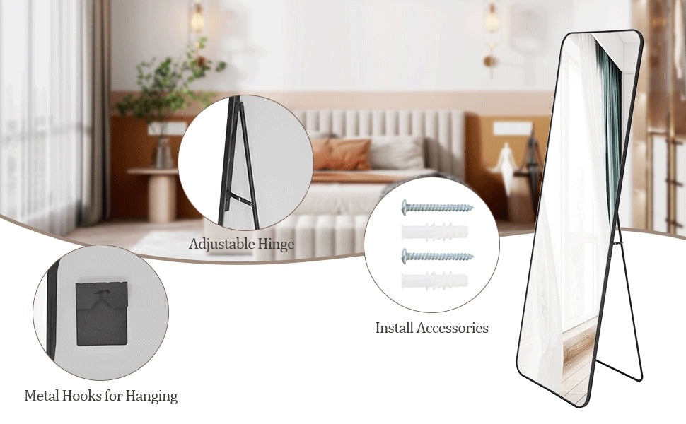 - Frame - Our free standing mirror is finished with a linear aluminum alloy frame which measures 0.32 inches wide, which creates a sleek finish, the standing holder of the mirror frame is also aluminum alloy durable enough to hold the mirror for standing, rounded corner design for safety usage in households