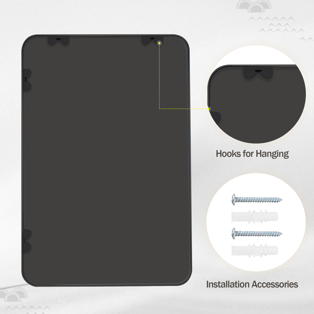- Premium Quality Materials - Rectangular wall mirrors are made of true HD glass that will not distort the image from any Angle. Our fully sealed metal frame & simple design endow the mirror anti-water, shockproof, more stable & longer working life. Rounded corner design for safety usage in households